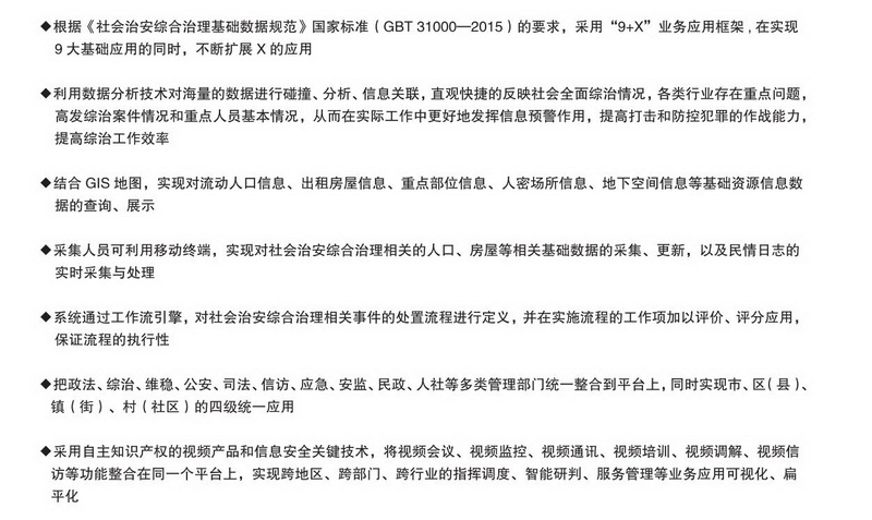 高科社會(huì)綜合治理信息系統(tǒng)采用了現(xiàn)代先進(jìn)的信息技術(shù)和現(xiàn)代管理理念,實(shí)現(xiàn)了面向市、區(qū)(縣)、鎮(zhèn)(街)、村(社區(qū))多級(jí)綜治部門綜治信息化的需求,通過整合綜治自身多個(gè)業(yè)務(wù)應(yīng)用,建立綜治信息基礎(chǔ)數(shù)據(jù)倉庫,開發(fā)出綜治管理中極為重要功能模塊。使各級(jí)綜治組織通過信息采集、案件流轉(zhuǎn)等,動(dòng)態(tài)掌握人、地、物、事、組織等基礎(chǔ)信息,同時(shí)整合公安、民政、司法、人力資源社會(huì)保障、住房城鄉(xiāng)建設(shè)、衛(wèi)生計(jì)生、安全生產(chǎn)監(jiān)管等相關(guān)業(yè)務(wù)數(shù)據(jù),進(jìn)行數(shù)據(jù)交換、關(guān)聯(lián)比對(duì),實(shí)現(xiàn)綜治相關(guān)數(shù)據(jù)資源互通共享。